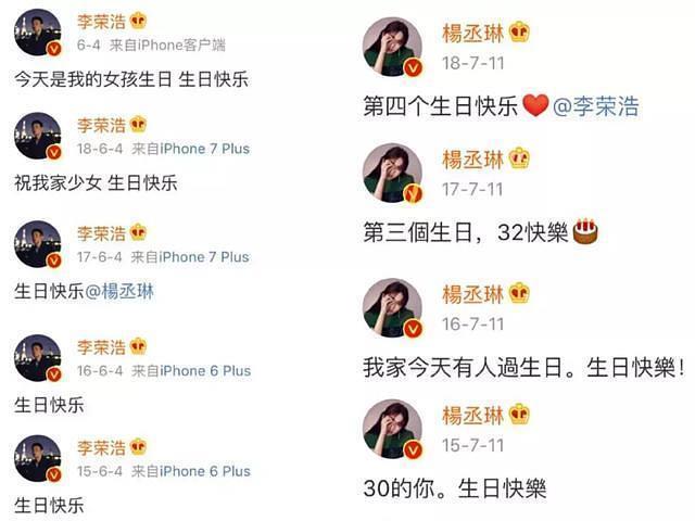 不久后,李荣浩在微博晒出和杨丞琳的亲密合照,随后秒删。