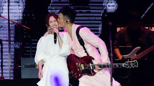 在台北小巨蛋演唱会上,李荣浩把杨丞琳的脸亲到了变形,甜哭全网。