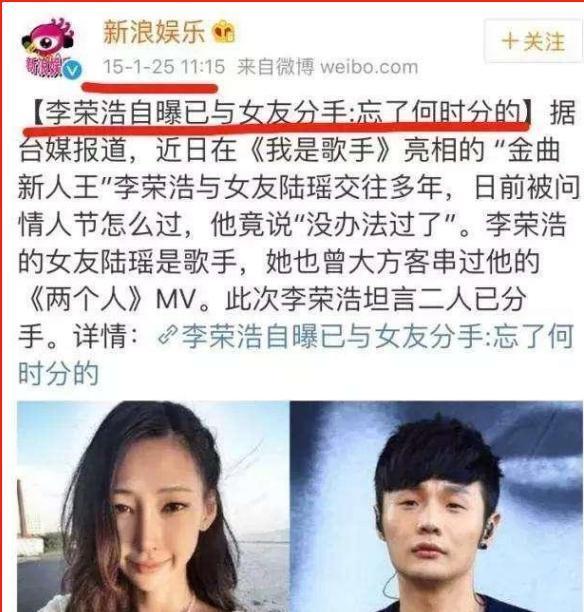 就在两人绯闻沸沸扬扬的时候,李荣浩和陆瑶的分手消息传来。