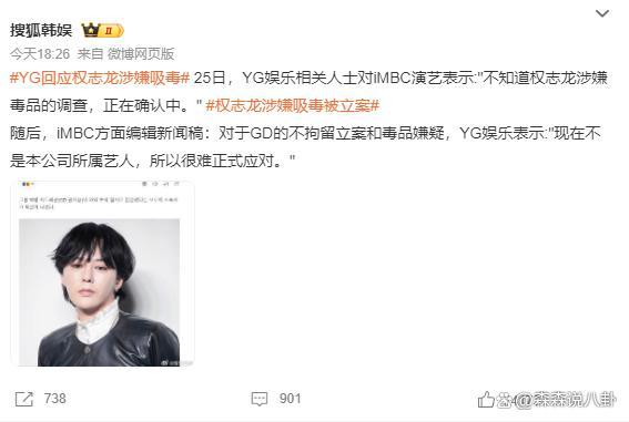 前经纪公司 YG 受访表示:" 不是本社艺人,难以回应。"