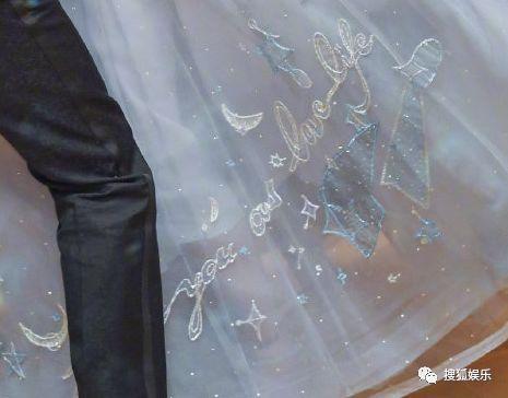 而唐艺昕晚宴的裙子上有一句英文刺绣,上面写着:Love you as love life