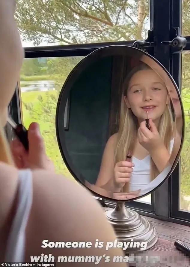 贝克汉姆家的小女儿小七昨天在 ins 上露了面,贝嫂发布的这段视频里,小七悄咪咪偷了妈妈的化妆品,给粉丝们展示自己美美化妆的过程。