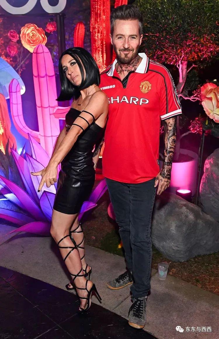 爱德华 · 诺顿和老婆 Shauna Robertson 扮贝克汉姆夫妇,贝嫂的站姿和表情很传神了 ↓↓