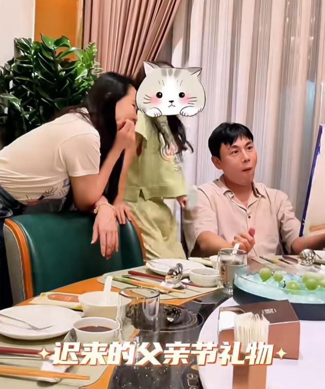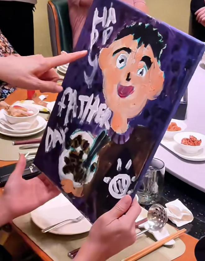 一家三口一起用餐时,秦昊收到了来自女儿的迟到的父亲节礼物。小米粒支撑着两条凳子一跃而起,伊能静弯着腰,托着腮帮子,看着女儿的作品," 幸福 " 两个字此刻具象化了。