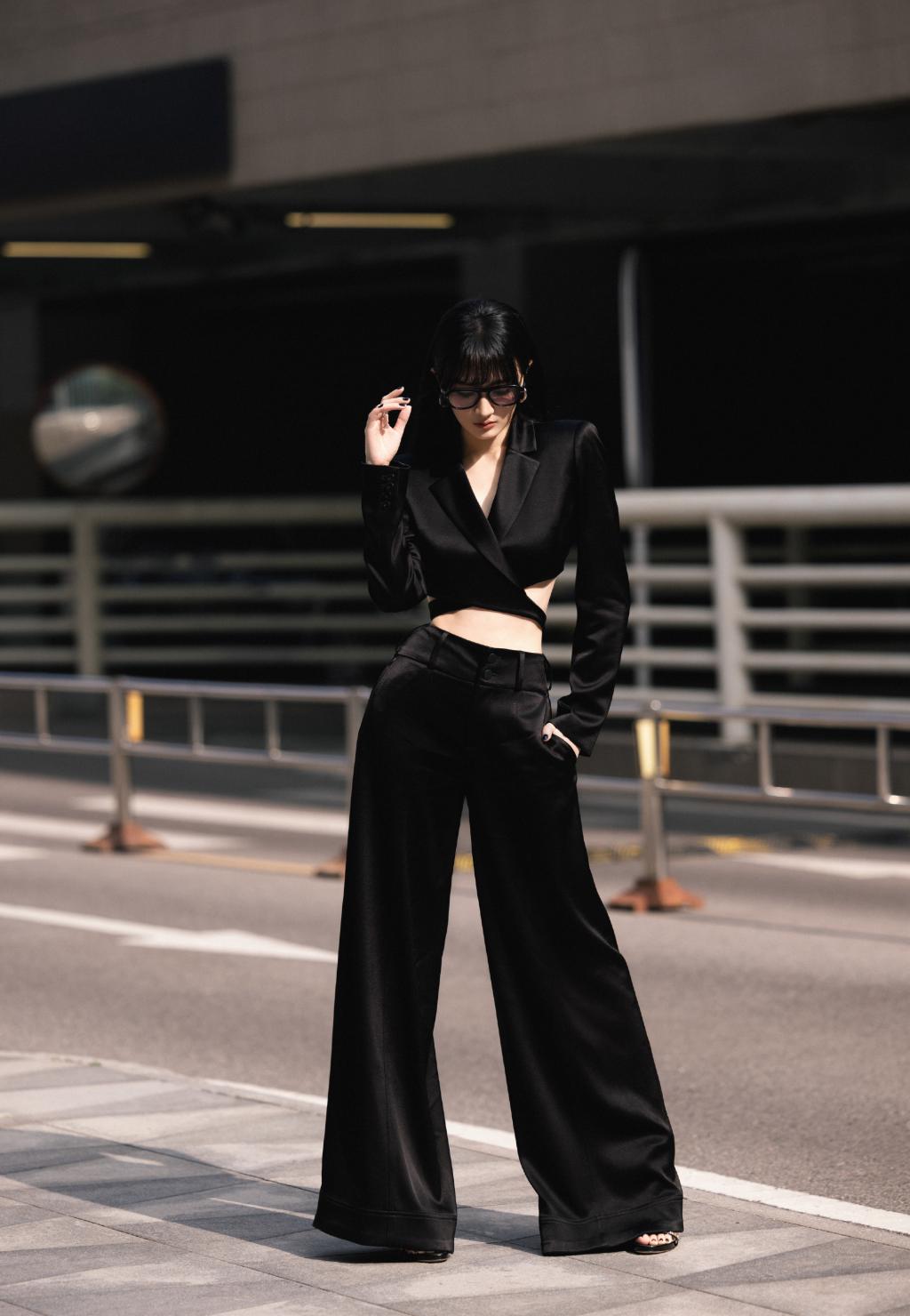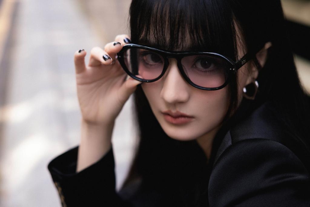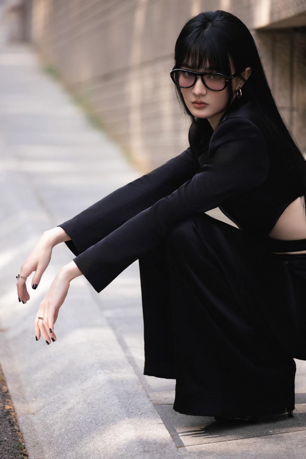 徐璐的一组美照曝光,她身穿黑色西装露出小蛮腰,肩披黑色长发戴黑框眼镜,妆容精致气质干练飒爽。