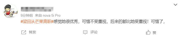 为梁田的离职感到遗憾,也为她的决定表示支持。