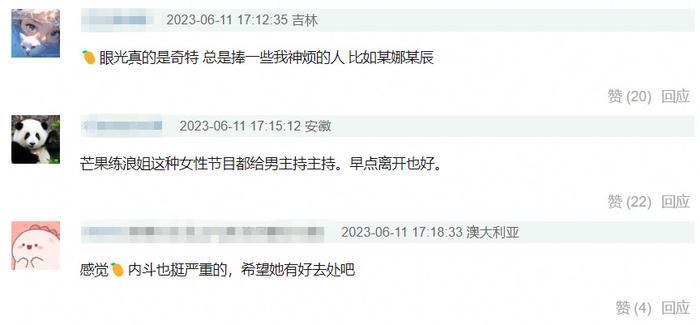 绝大多数,是对她的不舍,以及吐槽芒果台的“不作为”。