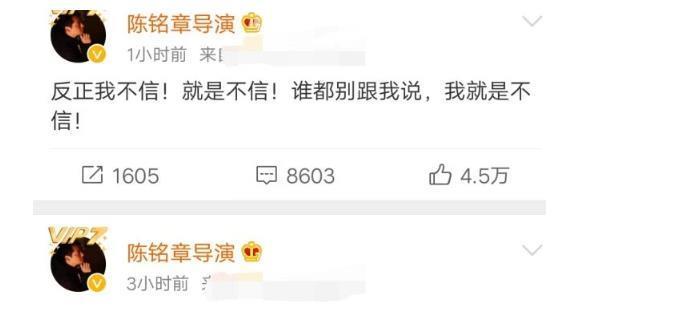 在确认高以翔死讯后,陈铭章导演依旧不愿相信,他写道:“反正我不信!就是不信!谁都别跟我说,我就是不信!”