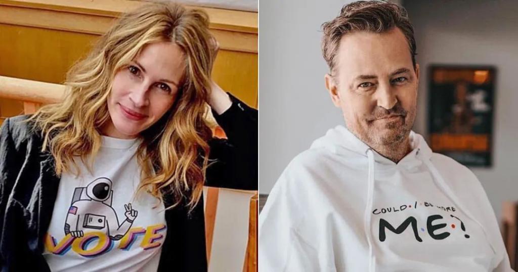 事实上,他的女人缘太旺了!个个是大咖。客串老友记的影后朱莉亚 · 罗伯茨,他短暂搭戏就搭上大明星本人,这功力没谁了 ↓↓