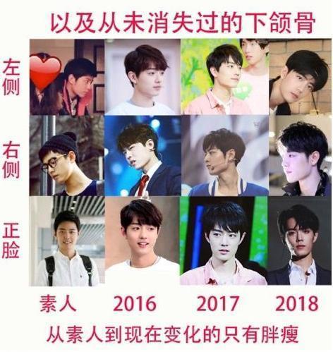 另外也有粉丝做的肖战下颌骨、鼻梁4年对比图,证明肖战从素人到现在唯一的变化只有胖瘦。