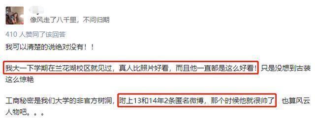 而且有时间线为证,并不是肖战红了之后故意帮他说话。这位同学还说肖战那个时候就很帅了,算学校里的风云人物。