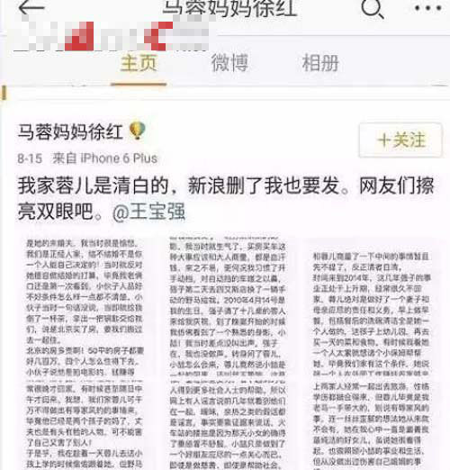 看来马蓉妈妈为了力争女儿的清白真是操碎了心,只可惜这是一个越洗越黑的神级母亲。俗话说,不怕神一样的对手,就怕猪一样的队友。看了之前徐红在微博上的一些列言论,不得不想问马蓉妈妈,您老这么一发声,到底是想红想疯了?还是真心为您女儿说话?