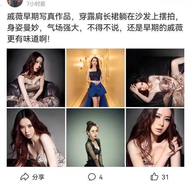 10月22日,又有娱乐博主在网上发布了一组戚薇早期摄影作品,并配文“戚薇的早期摄影作品,穿着露肩连衣裙在沙发上摆姿势,身材婀娜,气场强大,不得不说,更有韵味的是早期的戚薇”。这组戚薇早期摄影作品在网上走红,引起了网友的关注和热烈讨论。