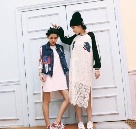 赵一涵头戴黑色针织帽,休闲十足,身穿一件黑白拼色连衣裙,上身的卫衣设计运动风满满,裙身蕾丝的面料增添了几分小性感,大长腿在蕾丝之下若隐若现,搭配小白鞋,混搭范儿十足。