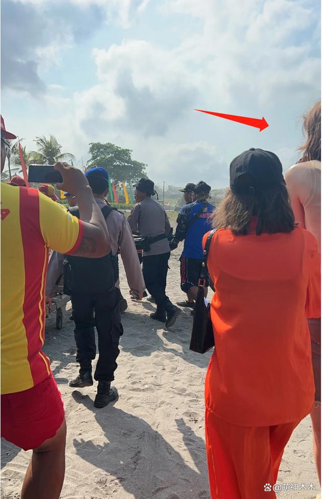 该网友晒出了现场图,身高很高的女子就是卡琳娜,她虽然背对着镜头,但可以看出应该是受到了惊吓,远远看着救援团队将仲尼抬上救援车。