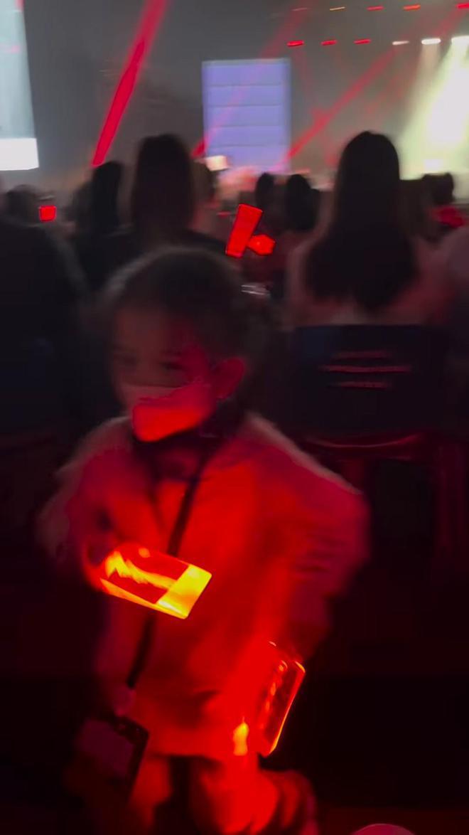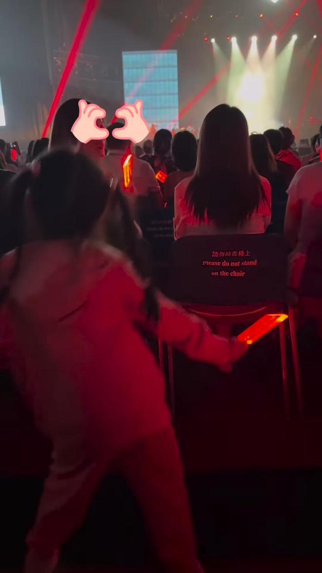 视频中所见,方媛带女儿看爸爸的演唱会表演,6 岁的 Chantelle 扎起双马尾,身穿有帽卫衣和休闲裤,一开始背着镜头看着远远的舞台,手拿打气荧光棒随音乐起舞,扭腰摆臀的动作既可爱又不失专业的感觉。