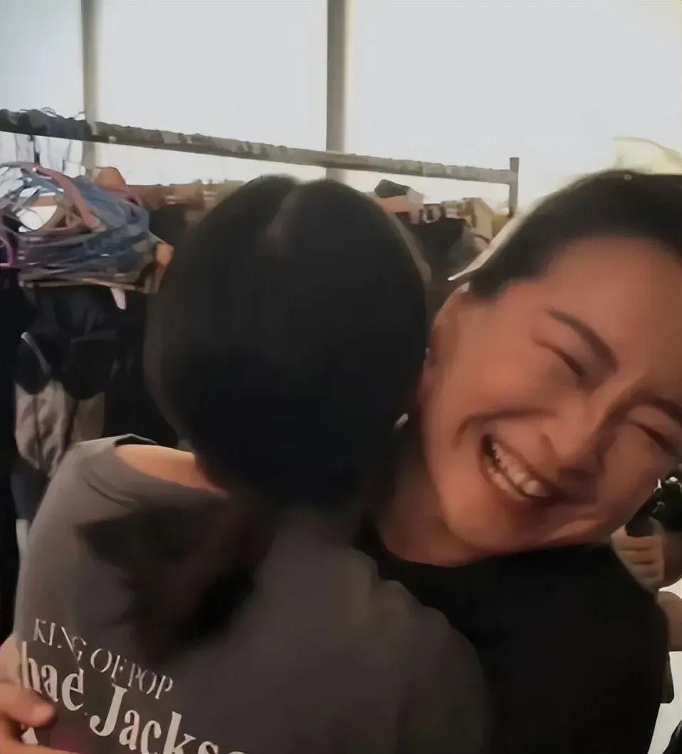 视频里,安藤樱与贾玲刚一见面,就紧紧拥抱在一起,仿佛久未见面的老友重逢。
