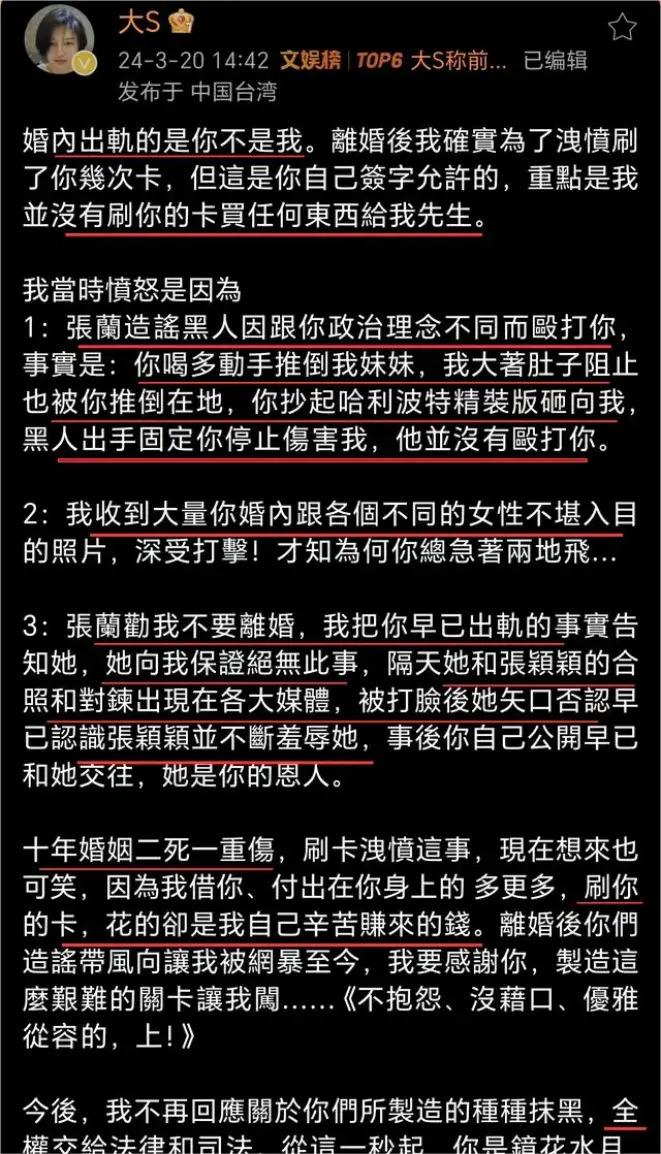 大 S 看到发疯似的汪小菲,不甘示弱,出来澄清。