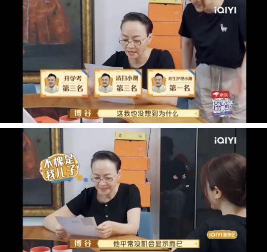 在综艺节目《做家务的男人》里,王博谷热情的给宋丹丹展示巴图的成绩单。