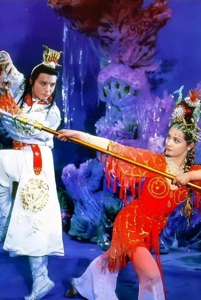 蜘蛛精们,她们的头饰全是仿蜘蛛样式,老大红蜘蛛,一身红,耳环也是 " 蜘蛛丝 ",在那个相对保守的年代,造型师反而更加大胆,给她们设计了性感露脐装。