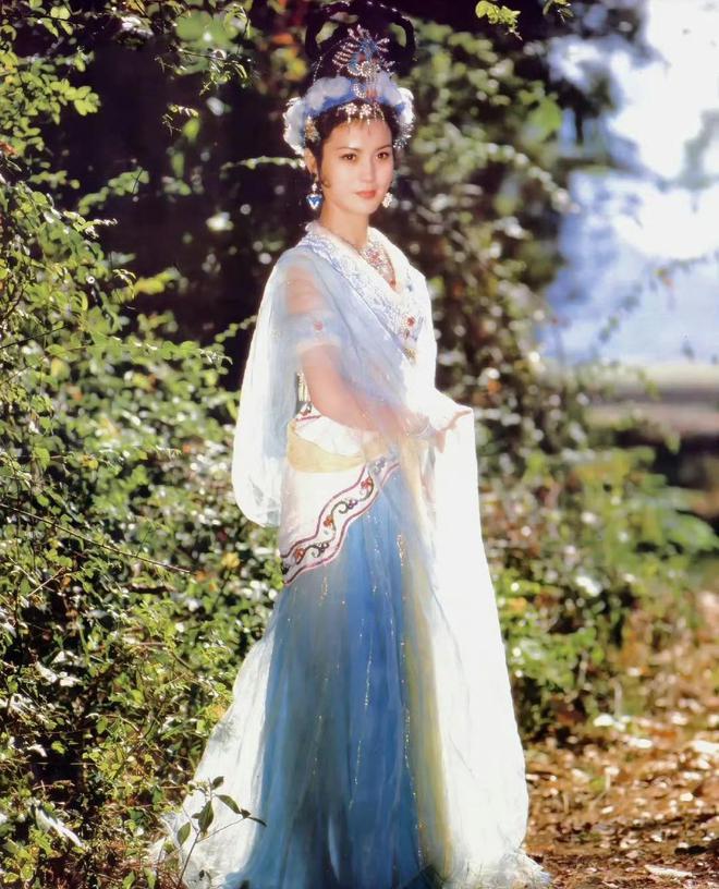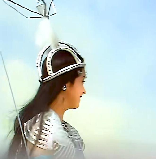 饰演者张青,文工团出身,中国第一代广告模特,她进组拍戏前是舞蹈演员,长相端正,身段好,气质佳,面部轮廓流畅,五官大,气质和长相中和了大面积高饱和饰品的抢镜感,加上大骨架略微丰腴的体型,撑起来了繁琐的衣服,一下子,质感不算太高的服化道,反而高级起来。