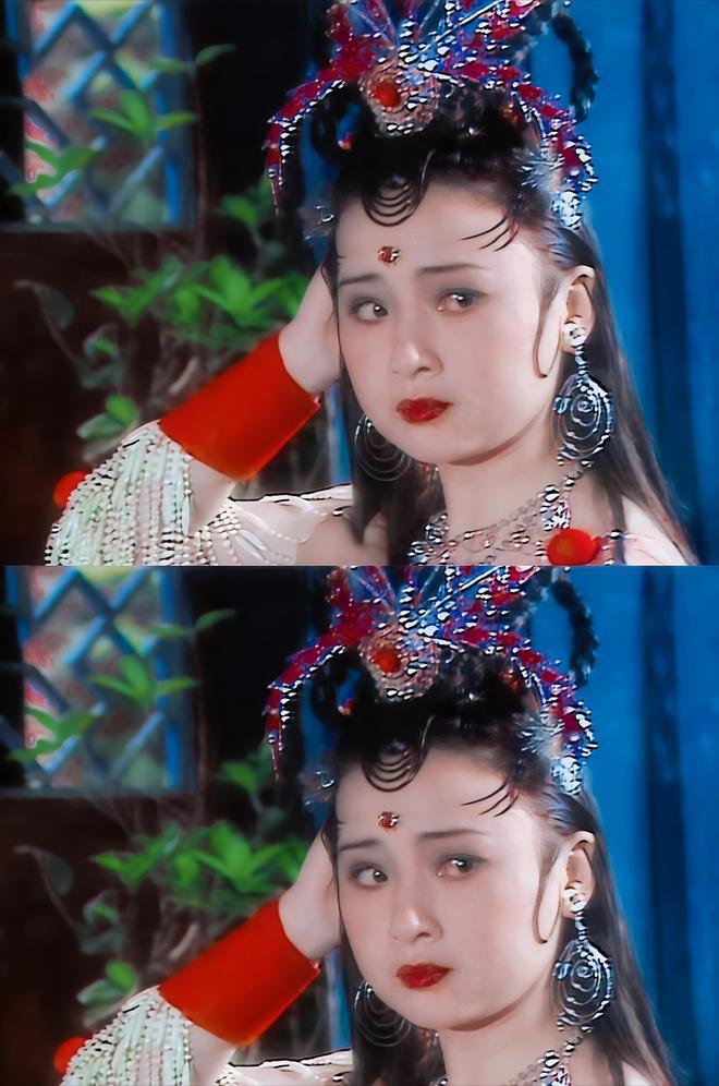 郑益萍同时期还在 87 版《聊斋》里演 " 香玉 " 单元,没有了《西游记》剧组的妆造后,没有那么惊艳,浓妆艳抹,稍显俗气。