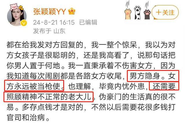 对于马筱梅的发声,张颖颖也不甘示弱,说她是被汪小菲当枪使,还嘲讽她找的不是老公,而是一个需要被照顾的大儿子。