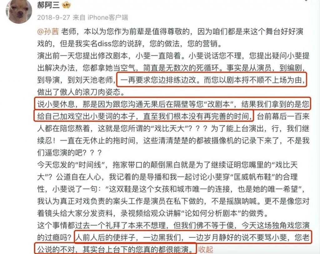 几天后,张小斐经纪人发文回应,把事情的来龙去脉又说了一遍,指责孙茜颠倒黑白。