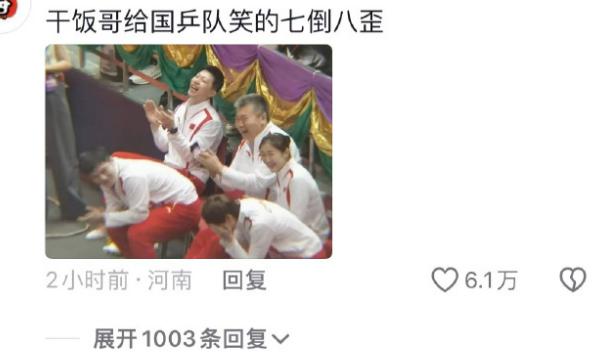 所以不止网友玩梗,其他运动员们也都忍不住对着咱们干饭哥贴脸开大。
