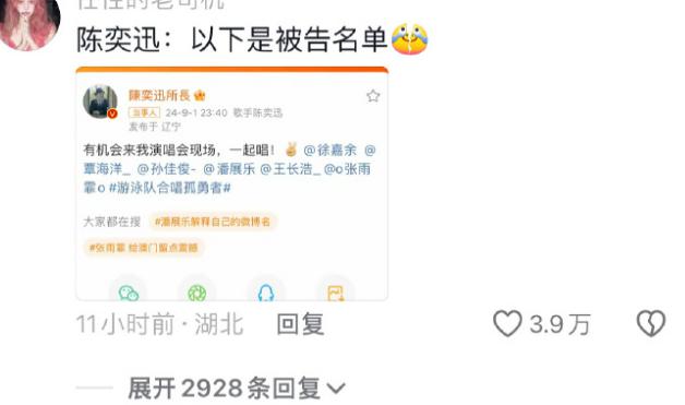 陈奕迅听到都忍不住发博了,邀请台上唱歌的这几位有机会去他的演唱会。