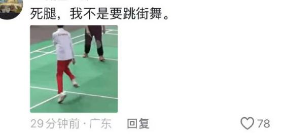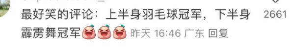 以及调侃他上半身羽毛球冠军,下半身霹雳舞冠军的。
