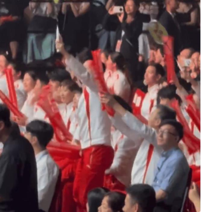 樊振东(在台下):举起羽毛球拍给你打 call!!!!