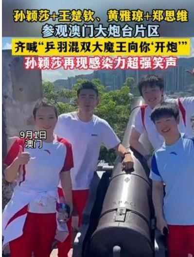 还是羽毛球和乒乓球的混双拍照,郑思维大喊:乒羽混双大魔王向你开炮!