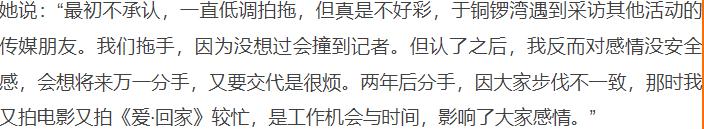 恋情曝光后一是怕影响事业,加上太年轻感情禁不起考验,这段恋情很快见光死,第二年就宣布分手。