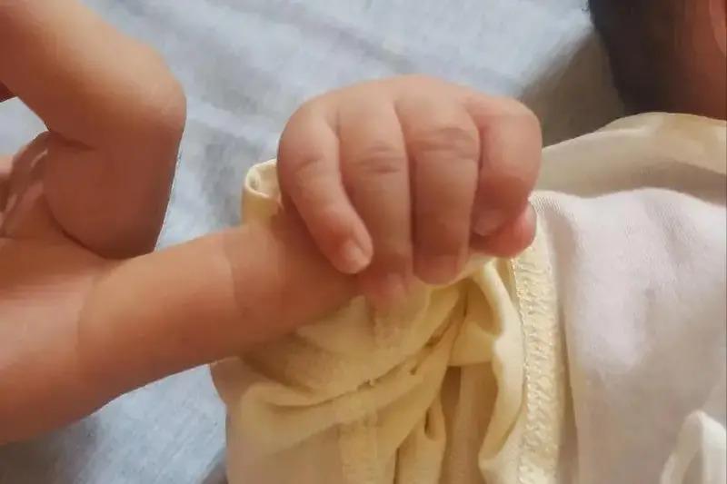 他忍不住偷偷用手轻轻碰了碰小婴儿。