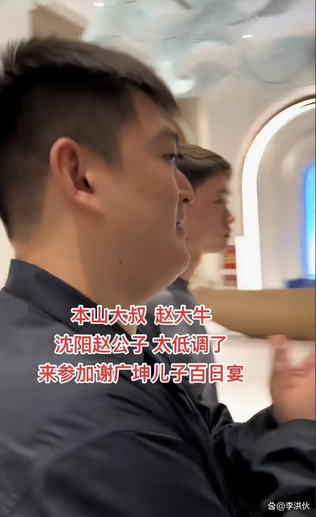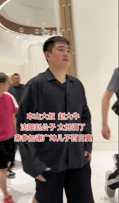 全身黑的赵大牛身材高大魁梧,与父亲赵本山的小身板完全相反。在一行人的簇拥和保护下,赵大牛走进宴会现场。虽然工作上领导着一班搞笑整活演员,但赵大牛话倒是不多。