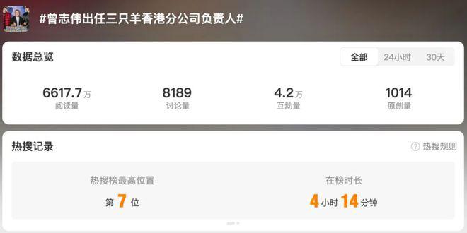 就连各大媒体的报道标题,以及当天的热搜词条都是:曾志伟出任三只羊香港公司负责人。
