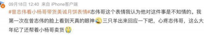 令人无语的是,居然有人觉得曾志伟被大小杨骗了,还有人分析他看到大小杨带货月饼时的表情,认为他不知情。