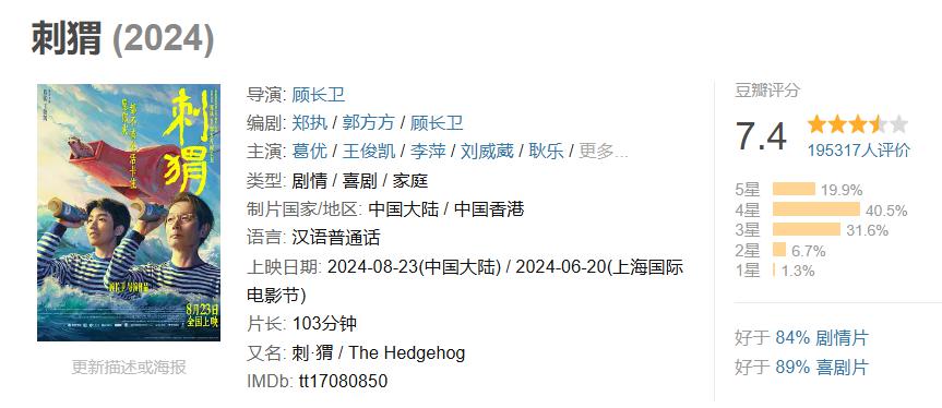 今年暑期档和葛优老师搭档的《刺猬》虽然口碑还不错,但热度确没能出圈 ...