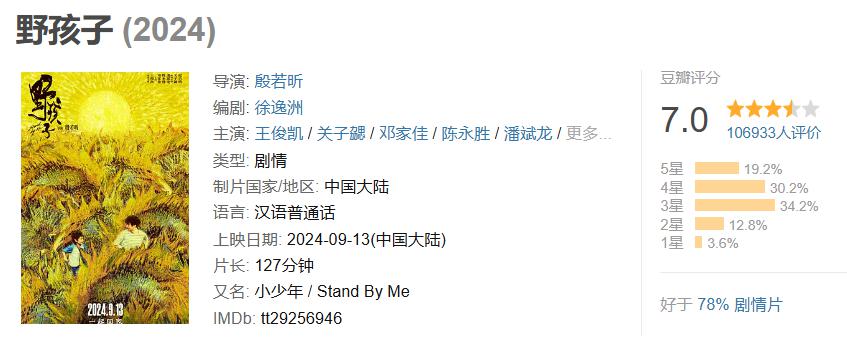 目前豆瓣 7.0 的评分,也优于市面上 80%的剧情片了,口碑不错的。