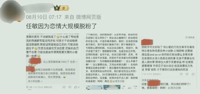 之前任敏被传出恋情,也遭遇大面积脱粉。