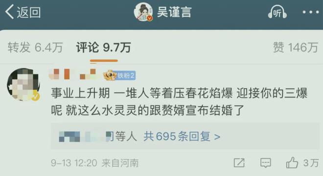 前些天,吴谨言官宣结婚后,评论区一片哀嚎。