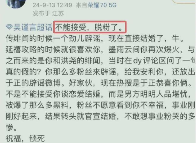 官宣结婚后,男方黑历史曝光,吴谨言的脱粉狂潮来了