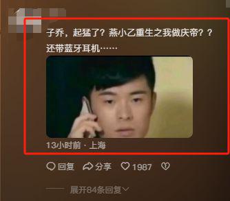 这位网友的评论简直让人笑不活了,本以为这位。小伙伴的评论已经" 够癫 " 了,可谁曾想下面这位网友的补刀,显得更加犀利,只见下面这位网友用了一张曾小贤打电话的照片,并且配文:子乔,起猛了?燕小乙重生之我做庆帝?还戴蓝牙耳机。