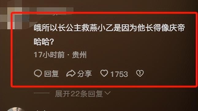 众所周知,电视剧版本里面的长公主李云睿,是喜欢庆帝李云潜的,因此,评论区还有网友凡尔赛的表示:所以长公主救燕小乙,是因为他长得像庆帝?