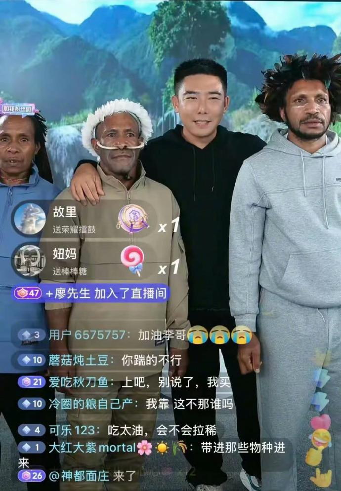 因此,我也只能把梦想寄托在别人身上。而最近,也确实有一位 " 业内人士 " 出现在了我的视野里,并且我还不得不承认,他可比明道 " 厉害 " 多了——毕竟,这哥们从原始丛林带回来了 " 原始部落 ",还让原始部落穿上了鸿星尔克,站在了直播间公开带货。
