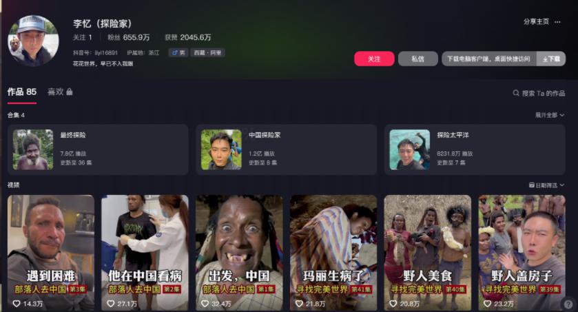 这哥们叫李忆,目前是一个 " 抖音 er",曾经是一个探险家。