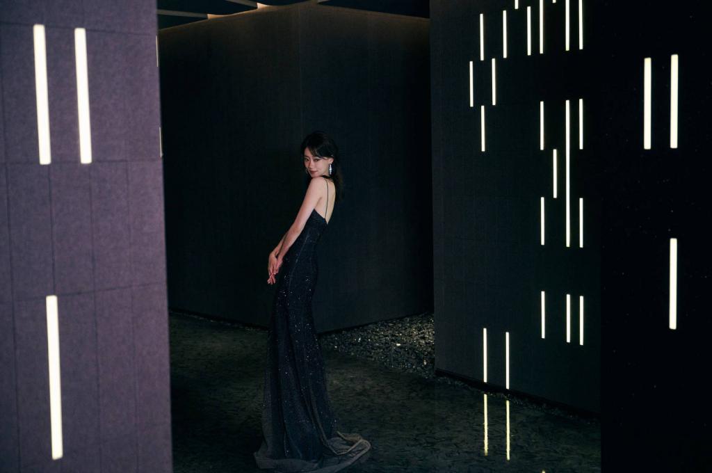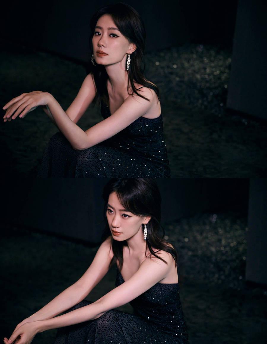 11 月 11 日,张小斐在社交平台上晒出一组写真美照,她身穿黑色吊带长裙,化身暗夜女王,熠熠生辉!