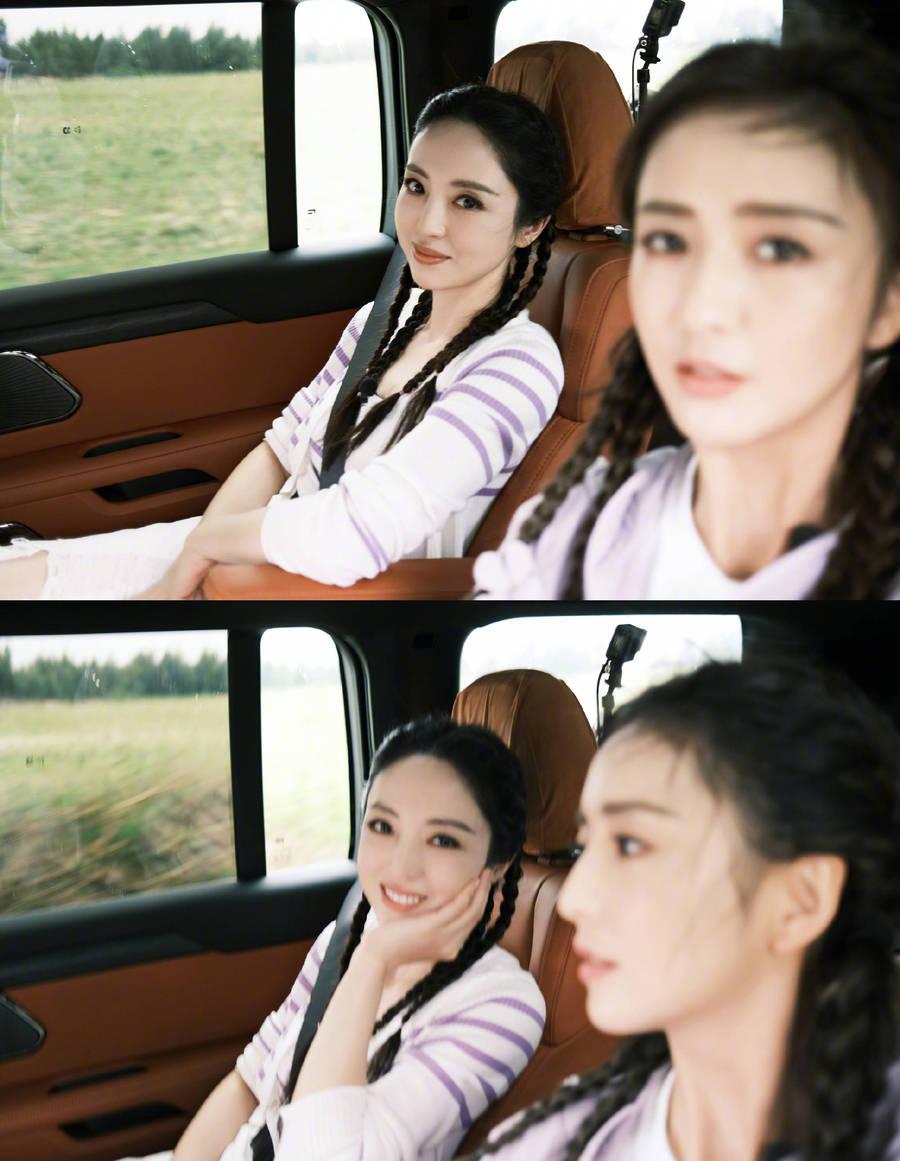 11 月 11 日,佟丽娅在社交平台上晒出一组旅游美照,她在车内与董璇同框合影,氛围感十足。