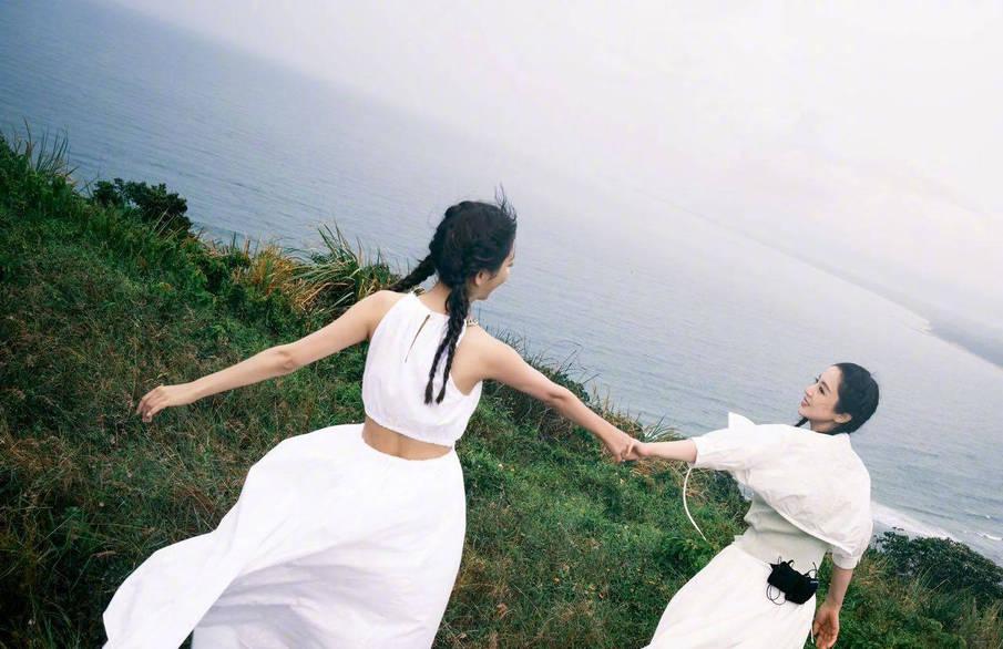 佟丽娅与董璇出游晒照 穿镂空裙纯洁恬静